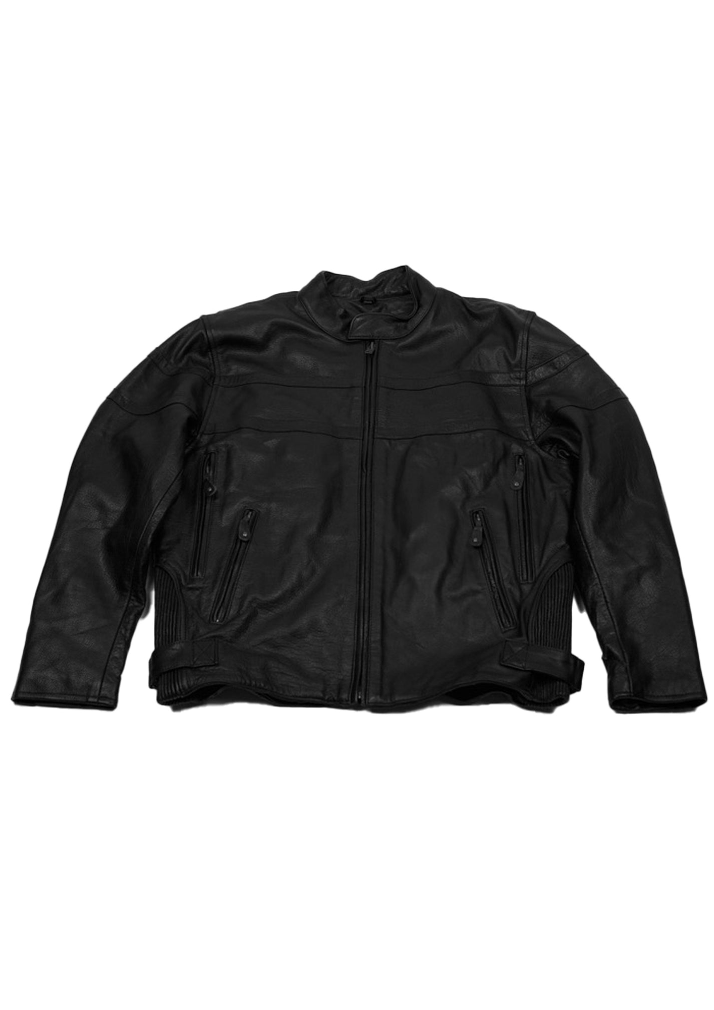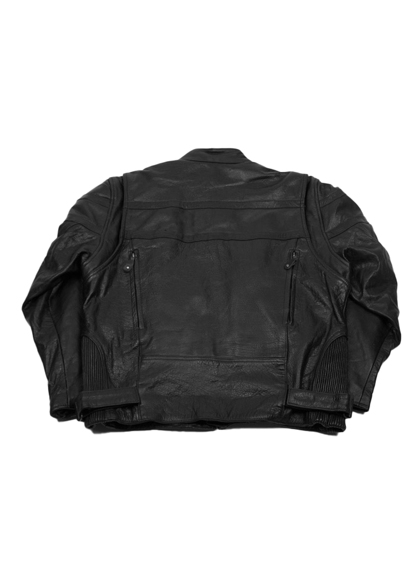 BLACK LEATHER JACKET WITH WHITE STITCHING